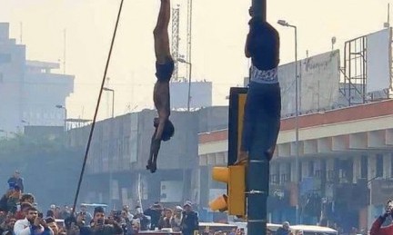 Daha sonra göstericiler tarafından tespit edilen şahıs, linç edildi. Kızgın grup bununla da kalmayıp öldürülen kişinin cesedini iki ayağından meydandaki bir trafik direğine astı.