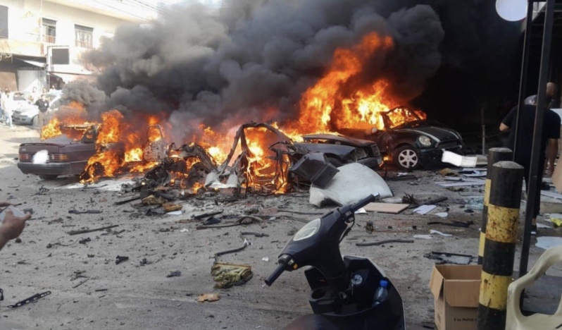 Hedef alınan araçla birlikte, Şarkiye ile Duveyr kasabaları arasındaki ana yol kenarında park halindeki birçok araç da alev aldı.