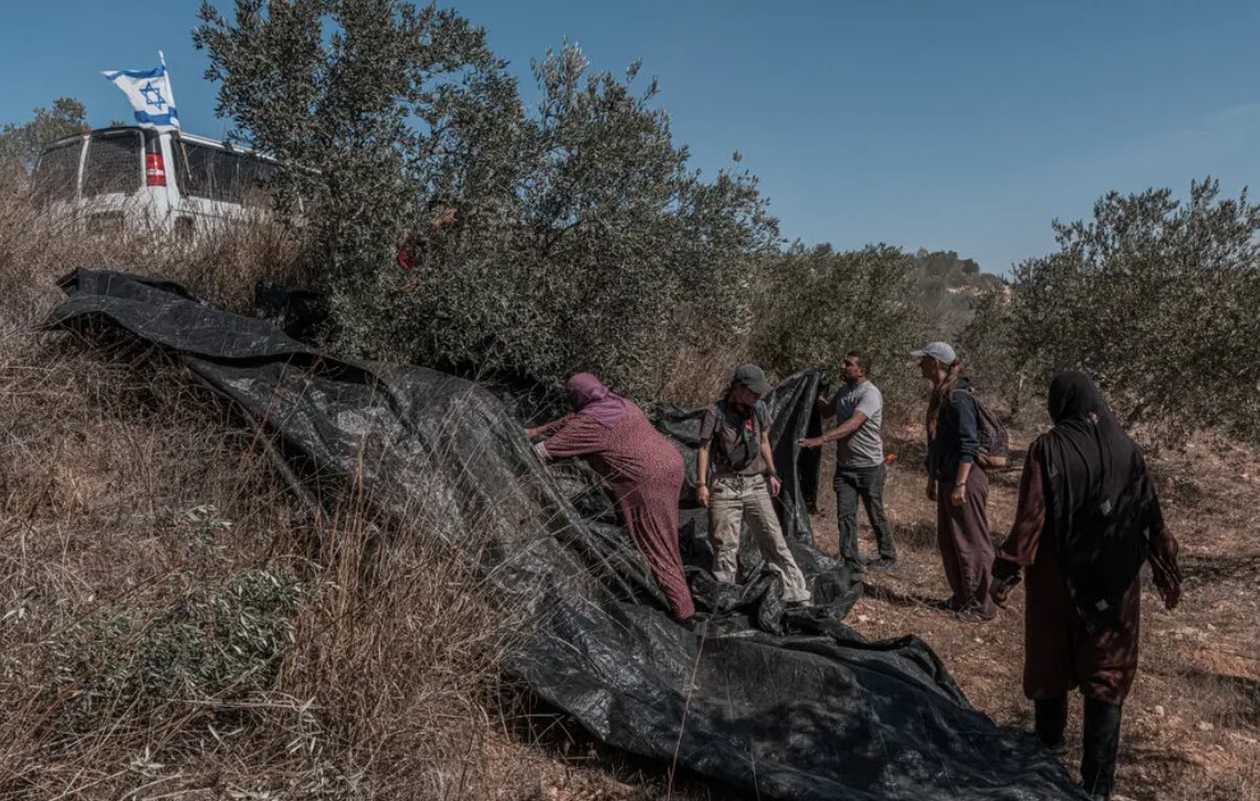 Geçen hafta sonu, Beyta’daki bir teraslı yamaçta zeytin toplamaya çalışan köylülere destek vermek üzere gelen İsrailli aktivistler, yerleşimcilerin taş atması ve bazı kişileri sopalarla dövmesiyle karşılaştı. Saldırılarda yaralananlar arasında bir Reuters fotoğrafçısı ve güvenlik danışmanı da bulunuyordu.