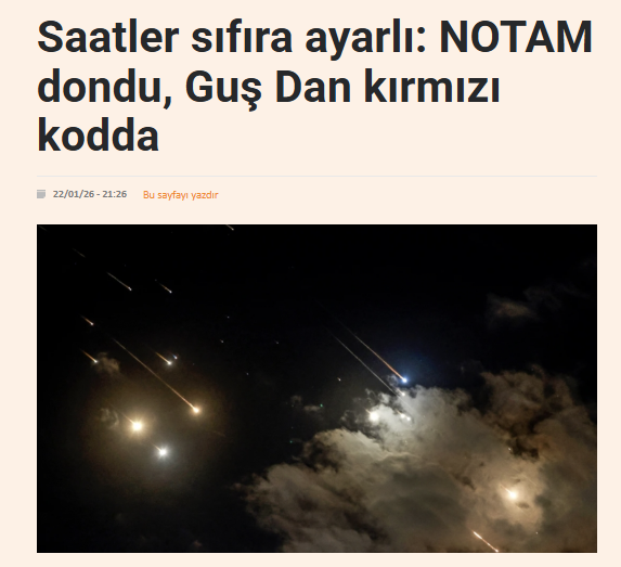 YDH- IntelSky platformu analisti Telal Nahle’nin 22 Ocak Perşembe günü 19:08 GMT – 22:38 Tahran saati arasındaki son raporu, Şiraz’daki kritik radar arızasının sona erdiğini ve NOTAM No. (A0285/26) numaralı bildirimin kaldırıldığını ortaya koyuyor.