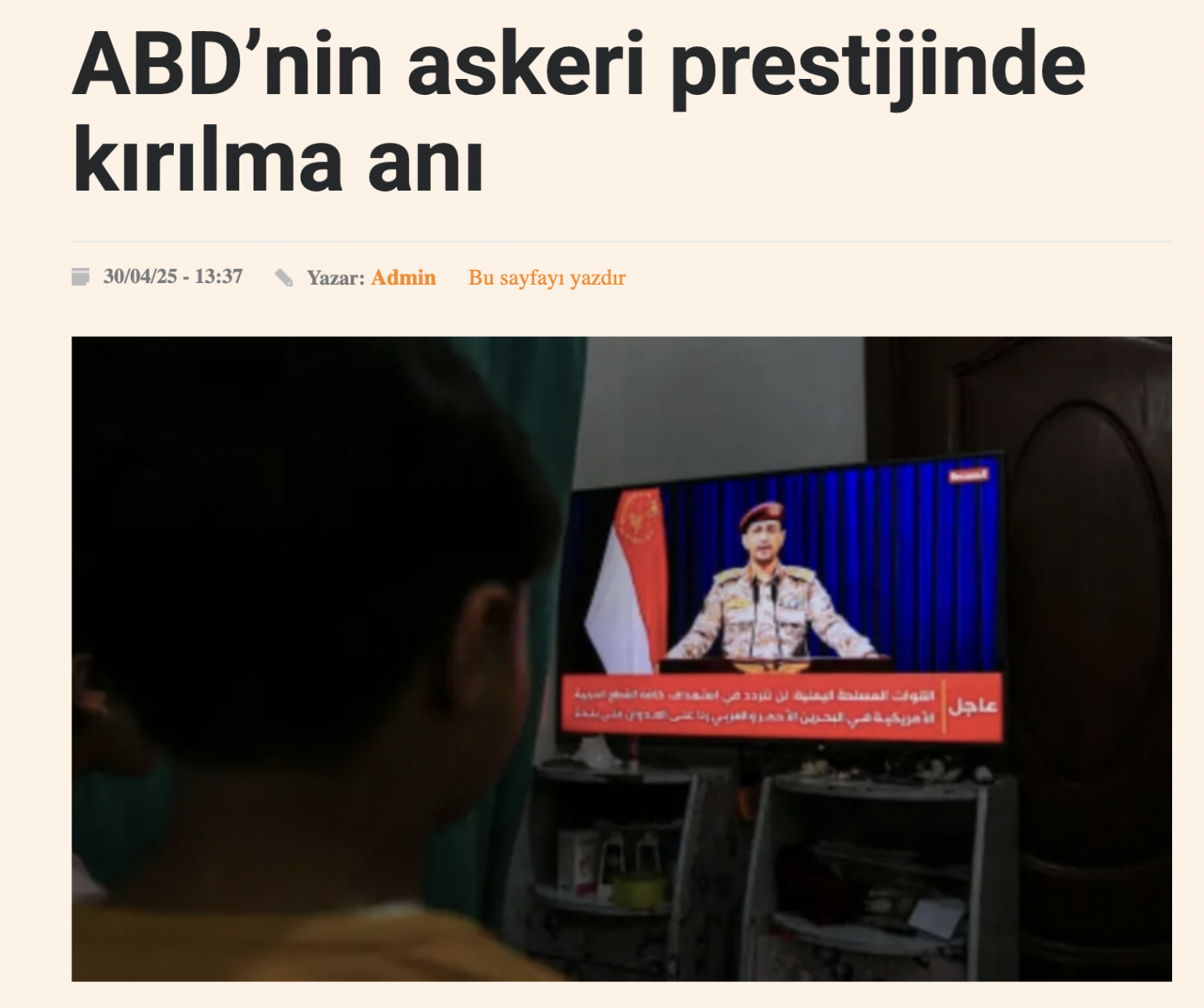Makalede, Kızıl Deniz’deki savaşın ölçeği ve sonuçları göz önüne alındığında, Batılı güçlerin itiraflarının şaşırtıcı olmadığı vurgulandı. “ABD’nin liderliğindeki akılsız güçler, Yemen ordusunun dayattığı karmaşık saha gerçekliği karşısında hazırlıksız yakalandı” denildi.