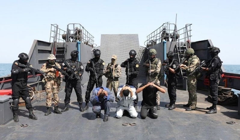 Operasyon sahası, İran donanmasına ait SH-3D tipi bir helikopter ve Devrim Muhafızları'na bağlı Bell 412 tipi helikopterle havadan taranarak kontrol altına alındı.