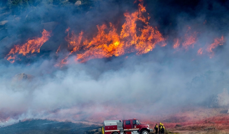 YDH - ABD'nin Kaliforniya eyaletinin güneyinde bir gün önce başlayan ve zorunlu tahliyelere yol açan dumanlı orman yangınıyla mücadele eden ekipler, cumartesi günü ilerleme kaydetti.