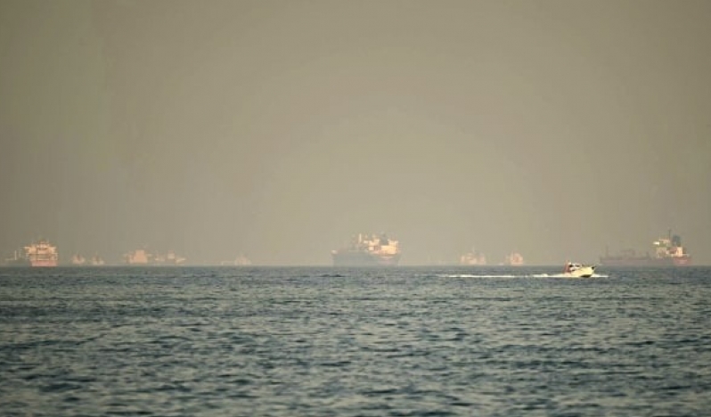 Tankerler, Birleşik Arap Emirlikleri açıklarında, boğaz girişinde sayıları giderek artan donanmanın bir parçasını oluşturuyor.