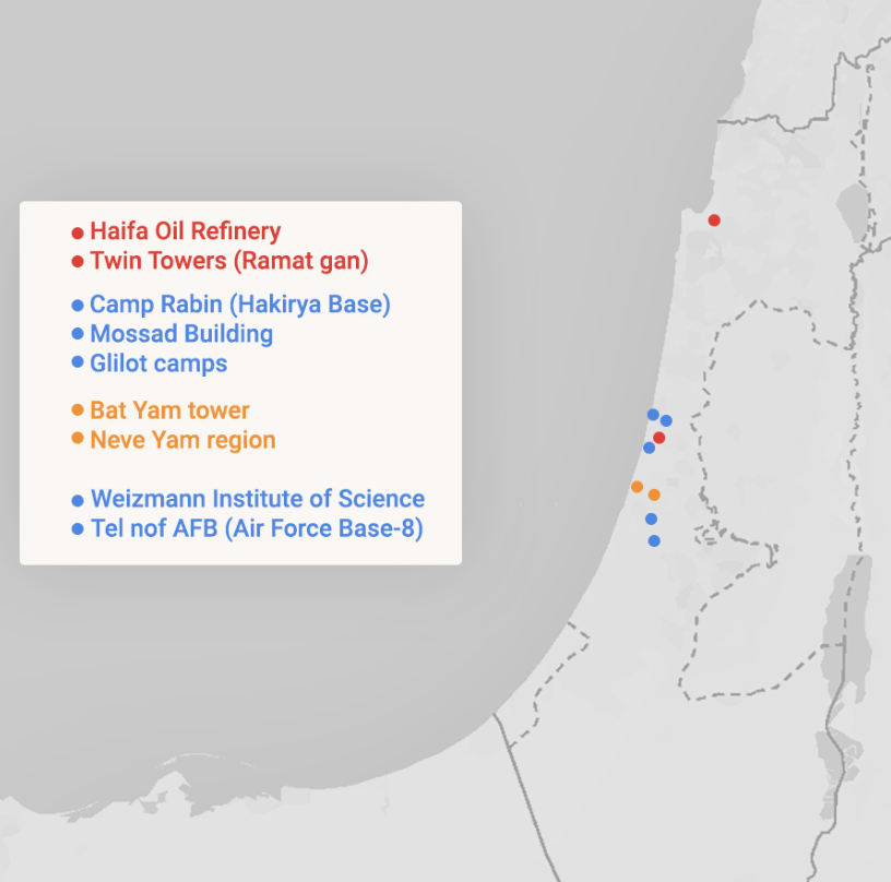 İran balistik füzelerinin yapısal hata payı ile bazı İsrail askeri ve güvenlik tesislerinin kibutzlere, yoğun nüfuslu şehir ve yerleşim bölgelerine yakın konuşlandırılması, füzelerin bazı yerleşim alanlarına isabet etmesinin başlıca nedenleri arasında yer aldı. Buna örnek olarak, Tel Aviv’in merkezi HaKirya bölgesinde, Rabin kampında konuşlu İsrail anti-balistik hava savunma fırlatıcıları gösterilebilir.