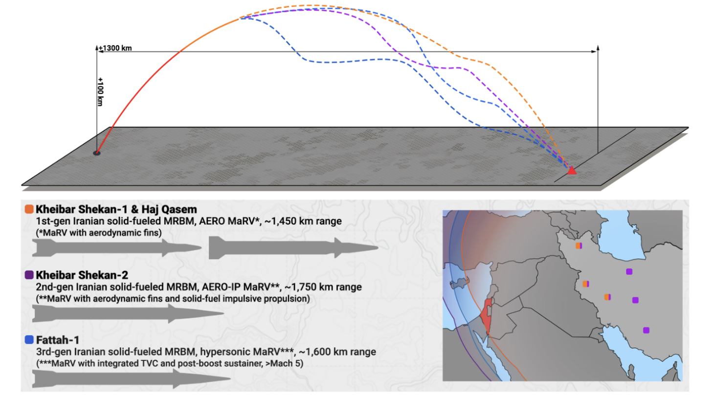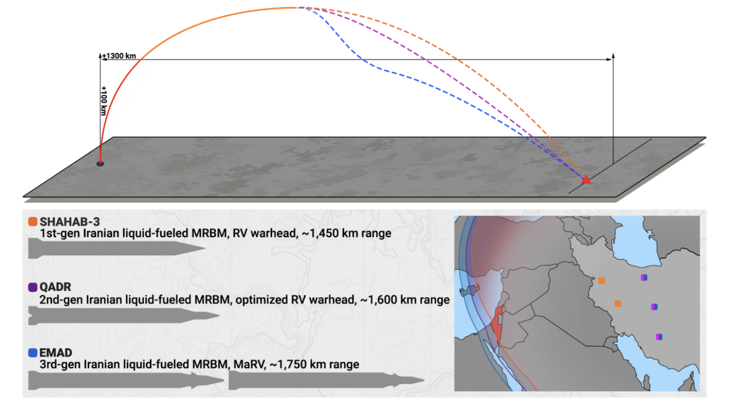 Savaşın öne çıkan özelliklerinden biri, İran’ın balistik füze çeşitliliğinin beklenmedik olmasıydı. Atışların çoğu, sıvı yakıtlı füzeler ile Şahab-3 platformuna dayanan eski nesil Gadir ve İmad sistemlerine dayanıyordu. Basit ayrılmış harp başlıklı (RV) Ghadr ailesi 2009’da tanıtıldı; manevra yapabilen ayrılmış harp başlıklı (MaRV) İmad ise 2015’te duyuruldu.