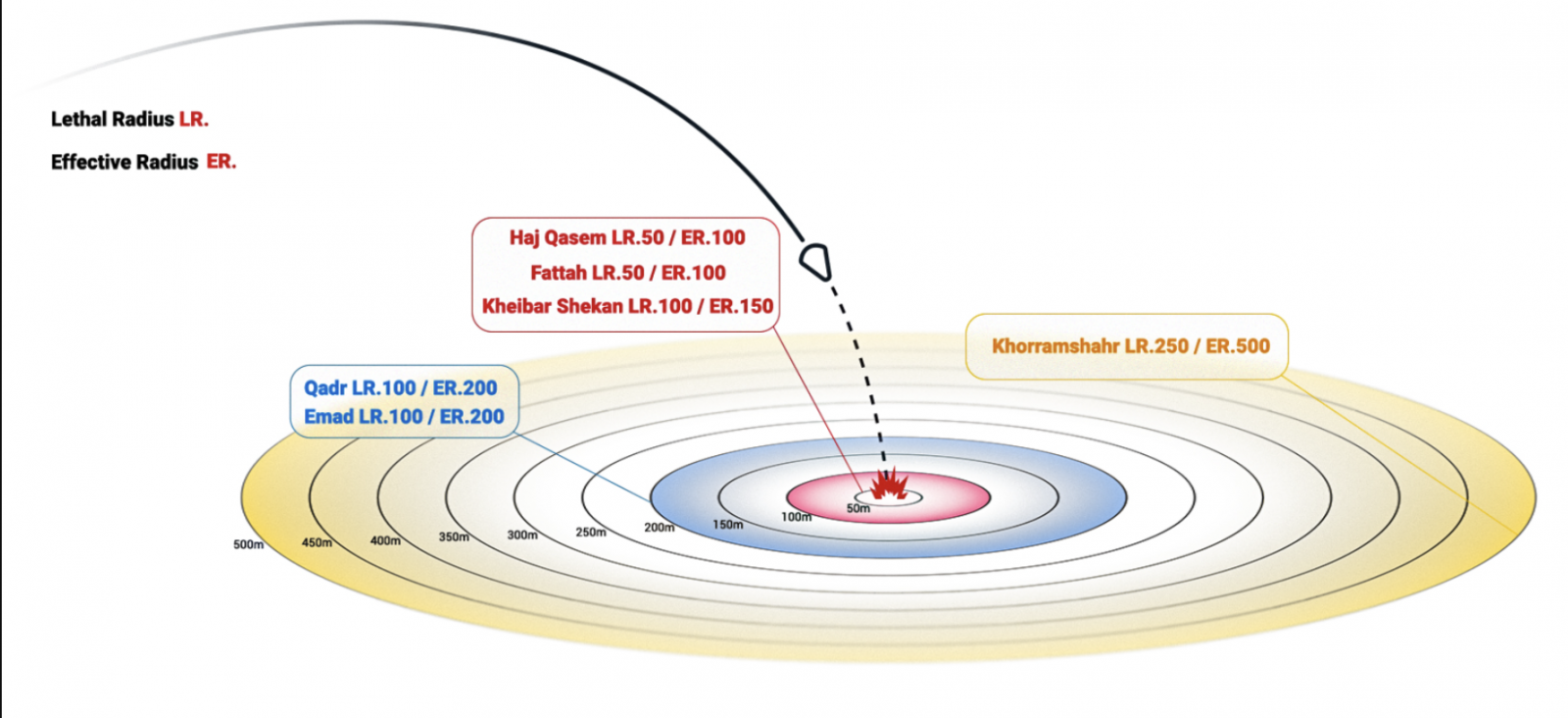 İran’ın sıvı yakıtlı füzeleri, Hayberşiken ve Fettah füze ailelerindeki katı yakıtlı füzelere kıyasla daha yüksek Dairesel Hata Olasılığı’na (CEP) sahipti ve bu nedenle daha düşük isabet hassasiyeti gösterdi.