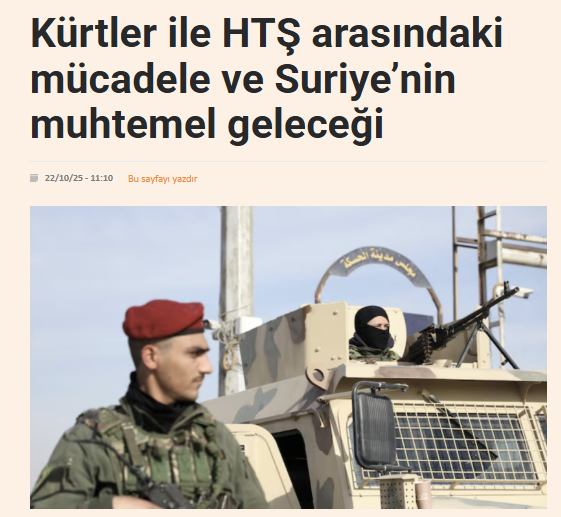 Bu tırmanışla eşzamanlı olarak YPG/YPJ Komutanı ve Suriye Demokratik Güçleri (SDG) Genel Komutanlık Üyesi Sozdar Hacı, Kürt haber portalı Theamargi'ye verdiği demeçte[i], Suriye'deki HTŞ ile devam eden görüşmelerin seyrine ilişkin karamsar bir tablo çizerek görüşmelerin "ileriye dönük herhangi bir adım atmadığını" ve iletişimin "tartışma çerçevesini aşamadığını" belirtiyordu.