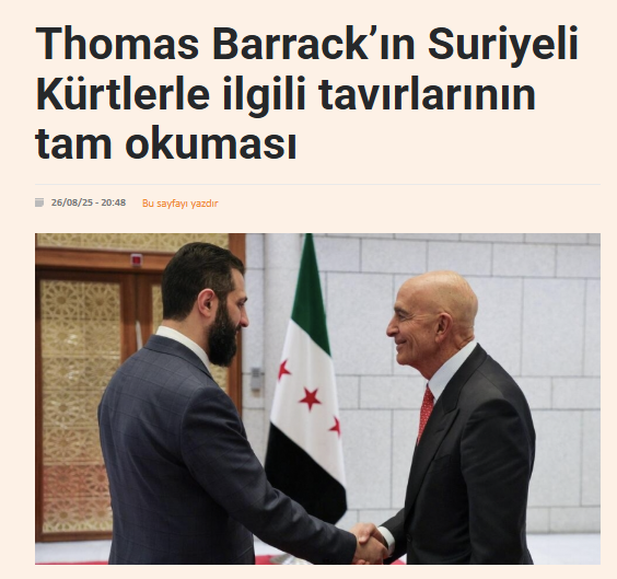 ABD’nin Suriye özel temsilcisi ve Türkiye büyükelçisi görevlerini yürüten Thomas Barrack, SDG’nin savunduğu ‘federalizm’ söylemlerinin gerçekçi olmadığını aktardı ve Irak Kürdistan Bölgesel Yönetimi benzeri bir yapının Suriye’de karşılık bulmayacağını ifade etti.