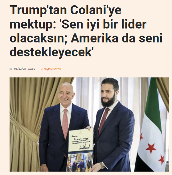 Reuters'a göre, ABD’deki bir kaynak, “Şaraa [Colani] adeta bir strateji ustası gibi görünüyor,” dedi.