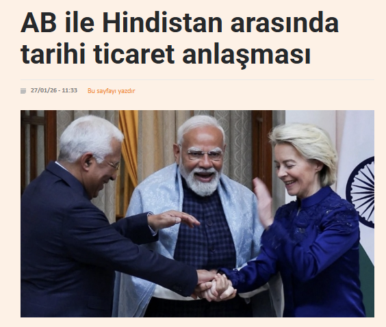YDH- Avrupa Birliği ve Hindistan, küresel ticaretin dengelerini değiştirecek bir anlaşmaya imza atarak yaklaşık iki milyar tüketiciyi ortak bir pazarda buluşturdu.