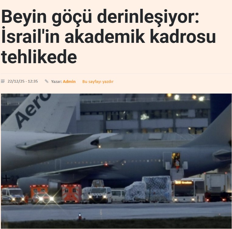 Haberde, “1948’den bu yana ilk kez”, İsrail’de uzun süreli göç edenlerin sayısının geri dönenlerin sayısını aştığı belirtildi.