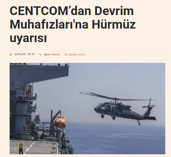 ABD Merkez Komutanlığı (CENTCOM), USS Abraham Lincoln uçak gemisinin başını çektiği dev filonun bölgeye ulaşmasıyla eş zamanlı bir bildiri yayımladı.