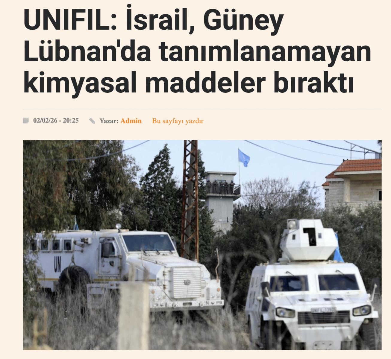 Şubat 2026 itibarıyla İsrail uçaklarının sınır hattındaki tarım arazilerine yönelik kimyasal püskürtme faaliyetlerinin yeniden raporlanması üzerine Lübnan makamları Birleşmiş Milletler’e resmi şikayette bulundu.