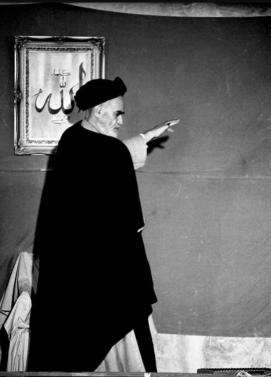 O meşhur konuşmasında, "Eğer Amerikalı bir aşçı Şah’ı çiğnerse, kimsenin itiraz etme hakkı olmayacaktır," diyerek tepkisini dile getirdi. Aynı zamanda İsrail'i de bu hegemonyanın bir uzantısı, İran ekonomisini ele geçirmeyi ve Kur’an’a savaş açmayı amaçlayan bir güç olarak tanımladı.