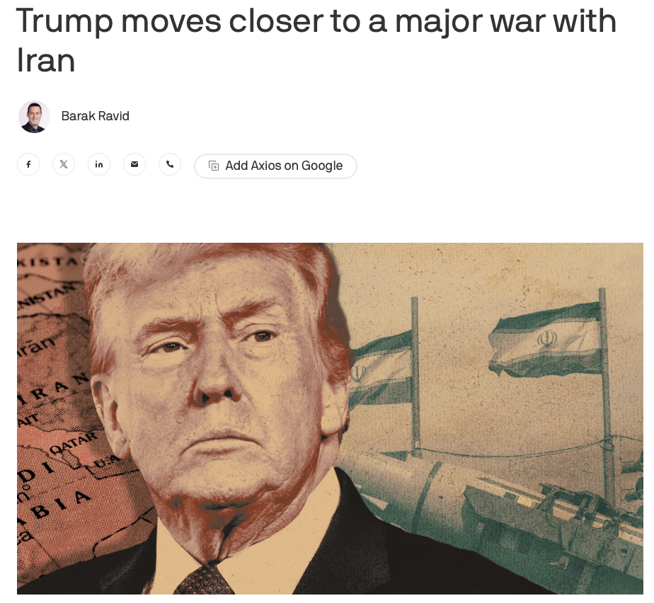YDH- Axios'tan İsrailli muhabir Barak Ravid'e göre, Trump yönetimi, Ortadoğu’da ''çoğu Amerikalının henüz farkında olmadığı kadar büyük ölçekli bir savaş senaryosuna'' her geçen gün daha fazla yaklaşıyor. Ravid'e göre, bölgeden gelen veriler, olası bir askeri harekatın çok yakın bir gelecekte başlayabileceğine işaret ediyor.