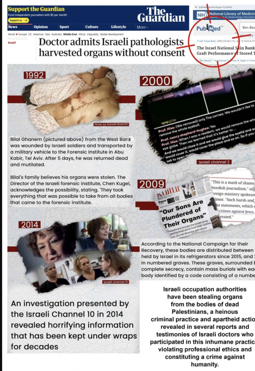Geçmişte İsrail Adli Tıp Enstitüsü eski başkanı Dr. Yehuda Hiss, 1990'larda aile rızası olmadan Filistinlilerden ve askerlerden deri ve organ alındığını itiraf etmişti.