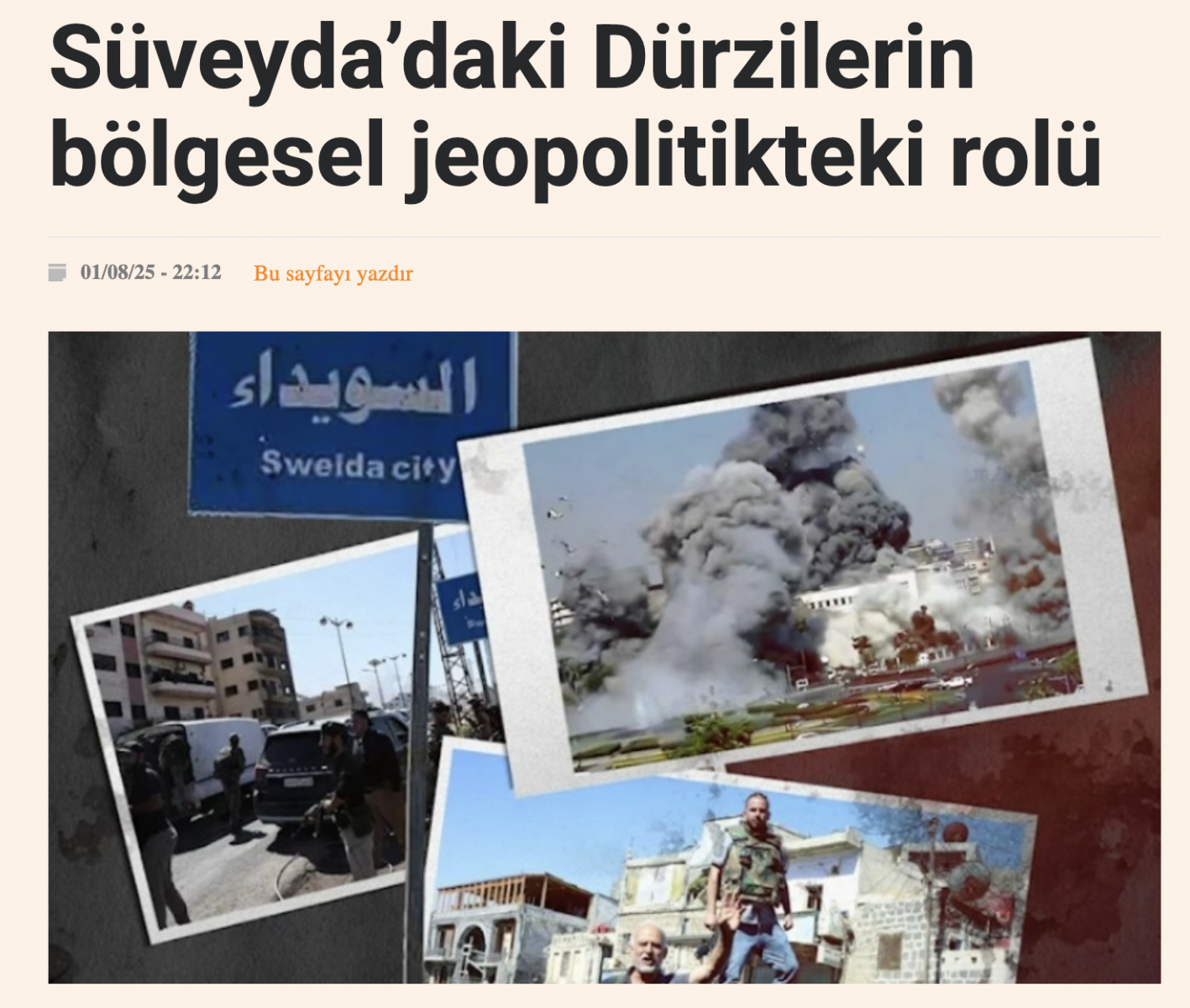 YDH- El-Ahbar gazetesinden analist Emir Ali'nin haberine göre, Suriye’nin güneyindeki Süveyda vilayeti, Dürzi topluluğunun dini lideri Hikmet el-Haceri'nin İsrail destekli ayrılıkçı politikalarına karşı yükselen yerel tepkilerle kritik bir dönüşüm sürecine giriyor.