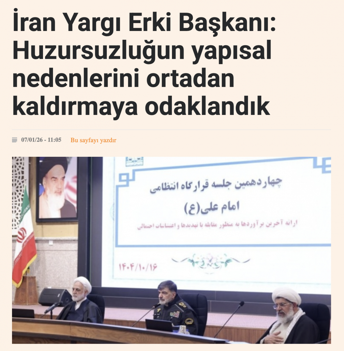 ╰┈➤ İran Yargı Erki Başkanı: Şiddete müsamaha yok