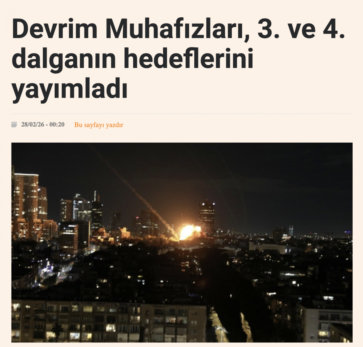 YDH- İslam Devrim Muhafızları Ordusu (DMO) Genel Komutanlığı, Gerçek Vaat 4 operasyonunun 5. dalgasına ilişkin 4. numaralı askeri bildiriyi yayımlayarak operasyonun kapsamını genişlettiğini duyurdu.