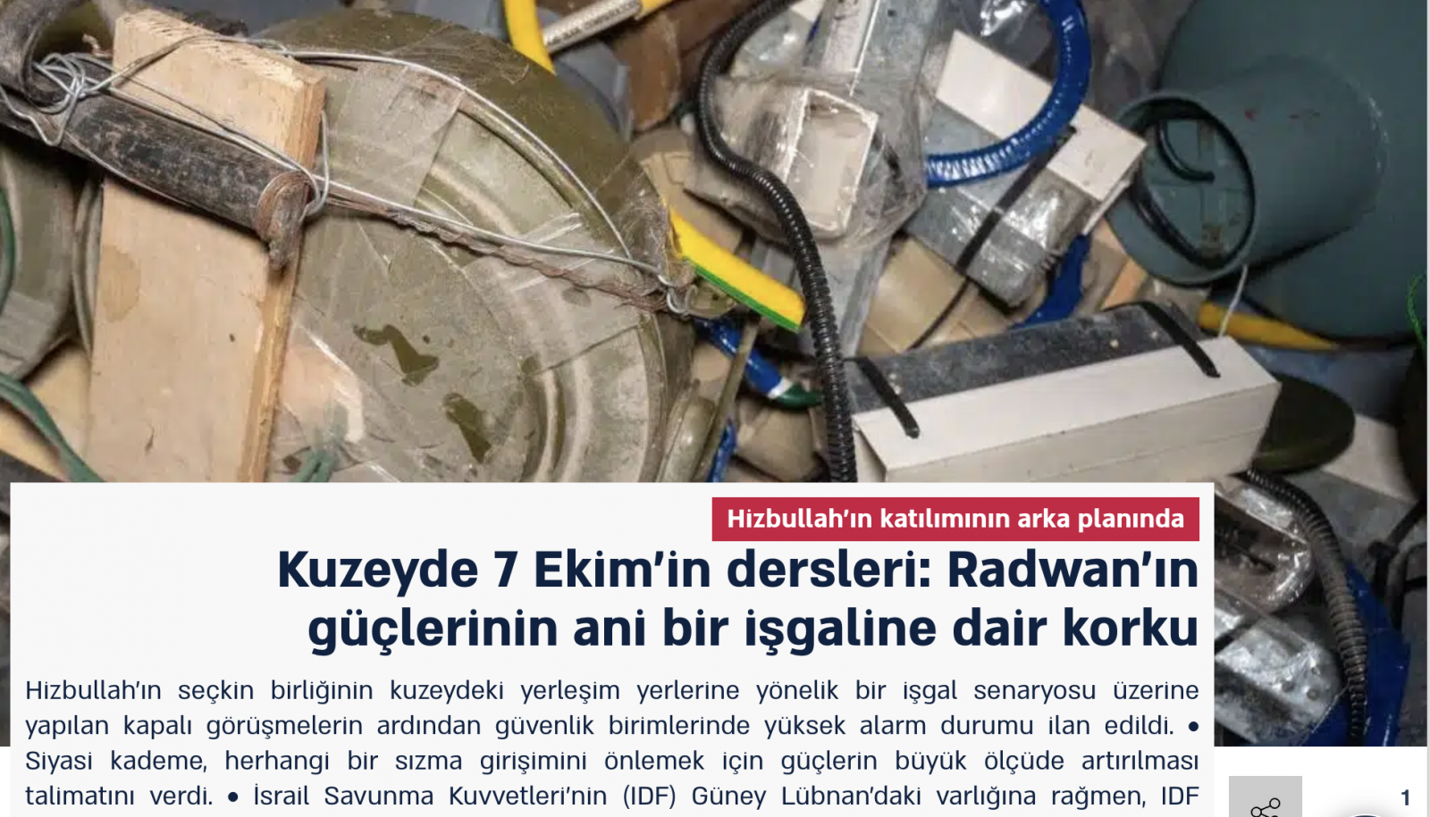 İsrail ordusu Lübnan içine asker sokmuş olmasına rağmen, Radwan Gücü’nün sınırı geçip rehineler alarak yerleşim yerlerini kontrol altına alma kapasitesinin hâlâ masada olduğu vurgulanıyor.