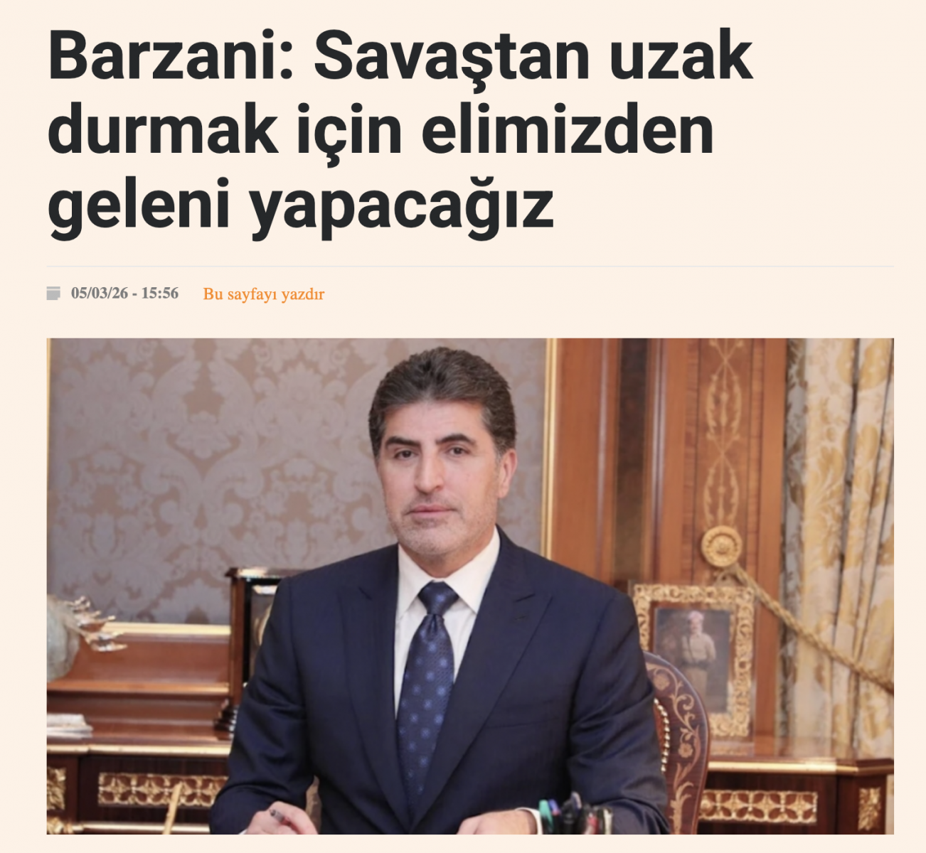 Barzani, Kürdistan Bölgesi’nin silahlı çatışmalardan uzak durma politikasına sadık olduğunu teyit ederek, "Bölgemiz karmaşık ve hassas bir süreçten geçiyor. Gerginliklerin artması, güvenliğimizi korumak adına hepimize büyük sorumluluk yüklüyor," dedi.