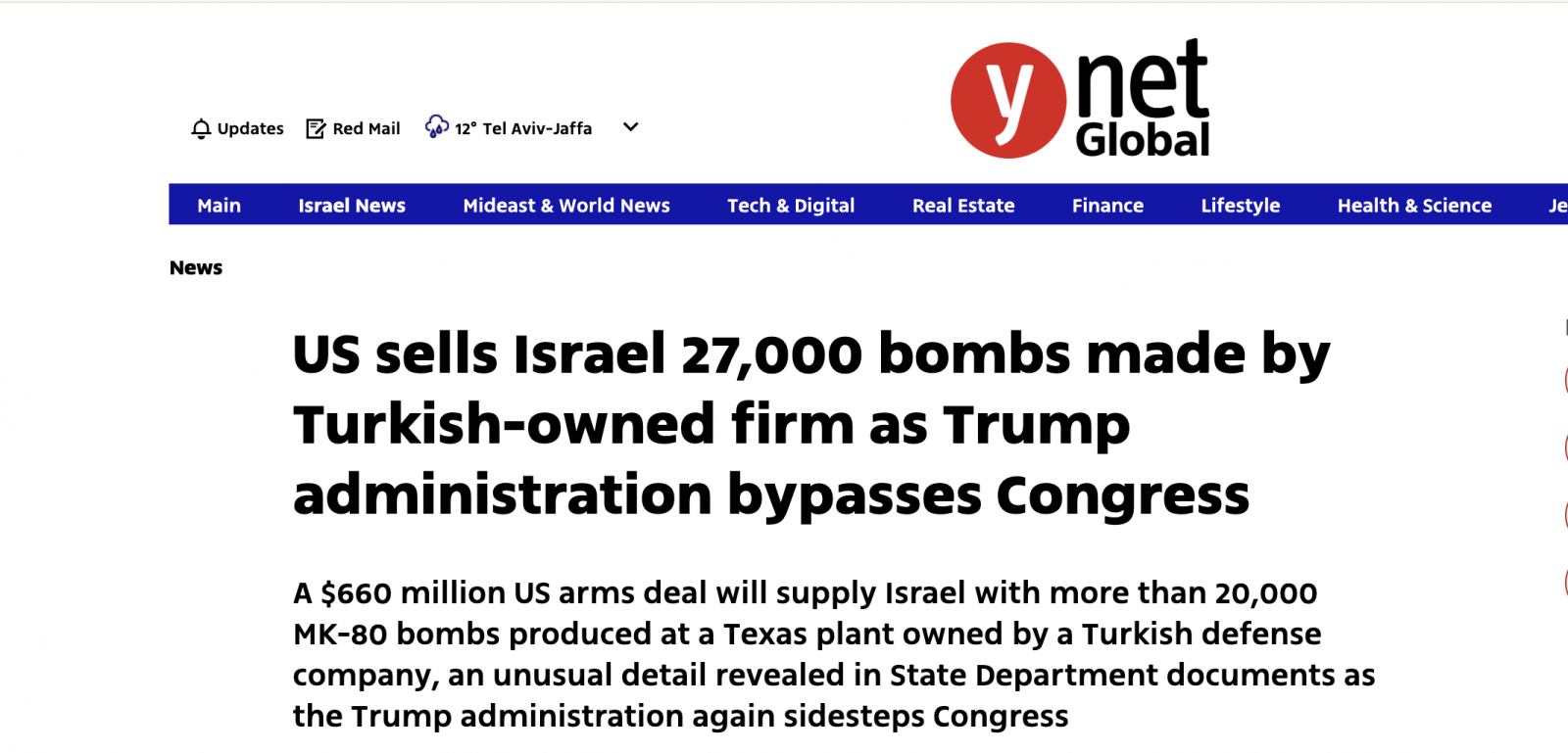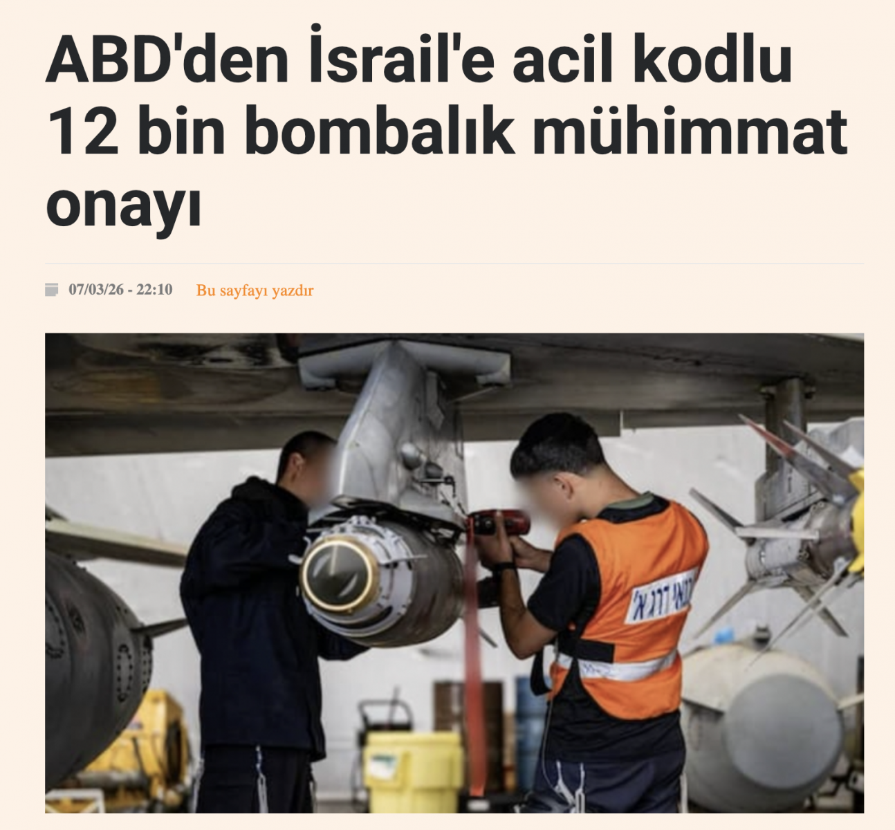YDH- İsrail gazetesi Yediot Ahronot'un iddiasına göre, ABD’nin İsrail’e yönelik son silah satış paketinde tedarik edilecek 27 binden fazla mühimmatın mülkiyeti, bir Türk savunma sanayii üreticisine ait.