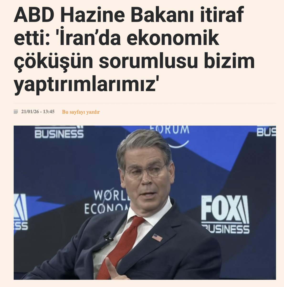 Bessent bugün ayrıca, İran'ın altyapısına yönelik saldırıları savundu ve ''Washington'un gerilimi azaltmak için askeri baskıyı artırdığını'' söyledi:
