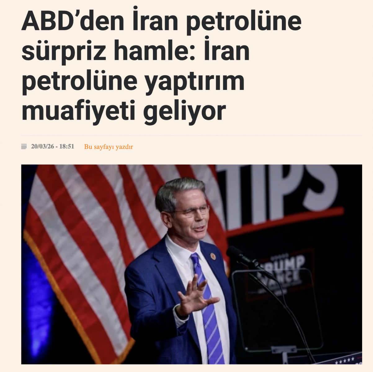 ABD Hazine Bakanı Scott Bessent, Washington yönetiminin İran’a yönelik petrol yaptırımlarını belirli bir süre için kaldırmak zorunda kaldığını ve bu süreçte Tahran’ın deniz üzerinde bekleyen petrolünü serbest şekilde satabileceğini iddia etmişti.