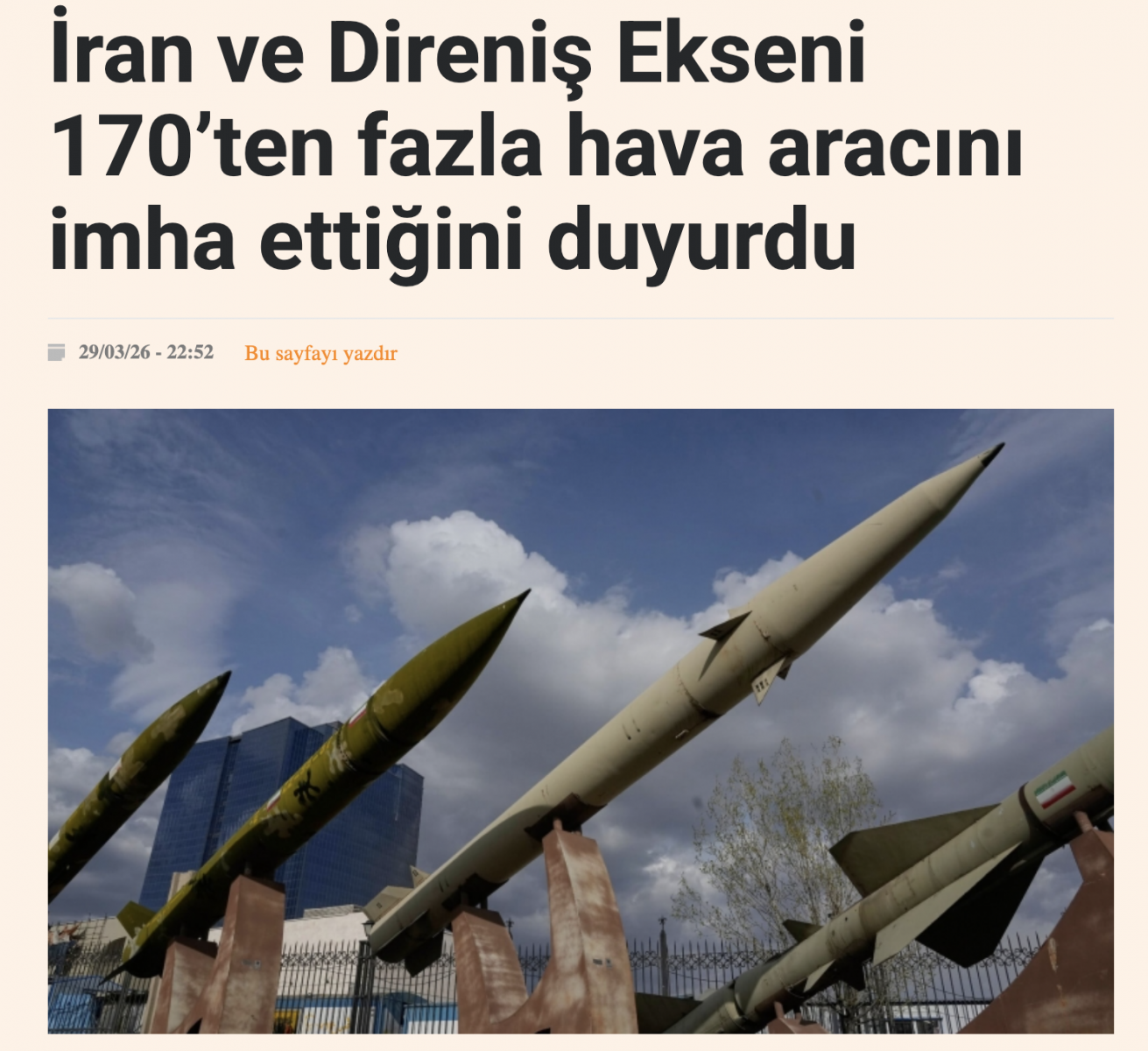 ABD'ye ait bir adet ileri teknoloji F-35 savaş uçağının daha, İran'ın merkezi hava sahasında Devrim Muhafızları Hava-Uzay Kuvvetleri'nin modern savunma sistemleri tarafından hedef alınarak tamamen imha edildiği bildirildi.