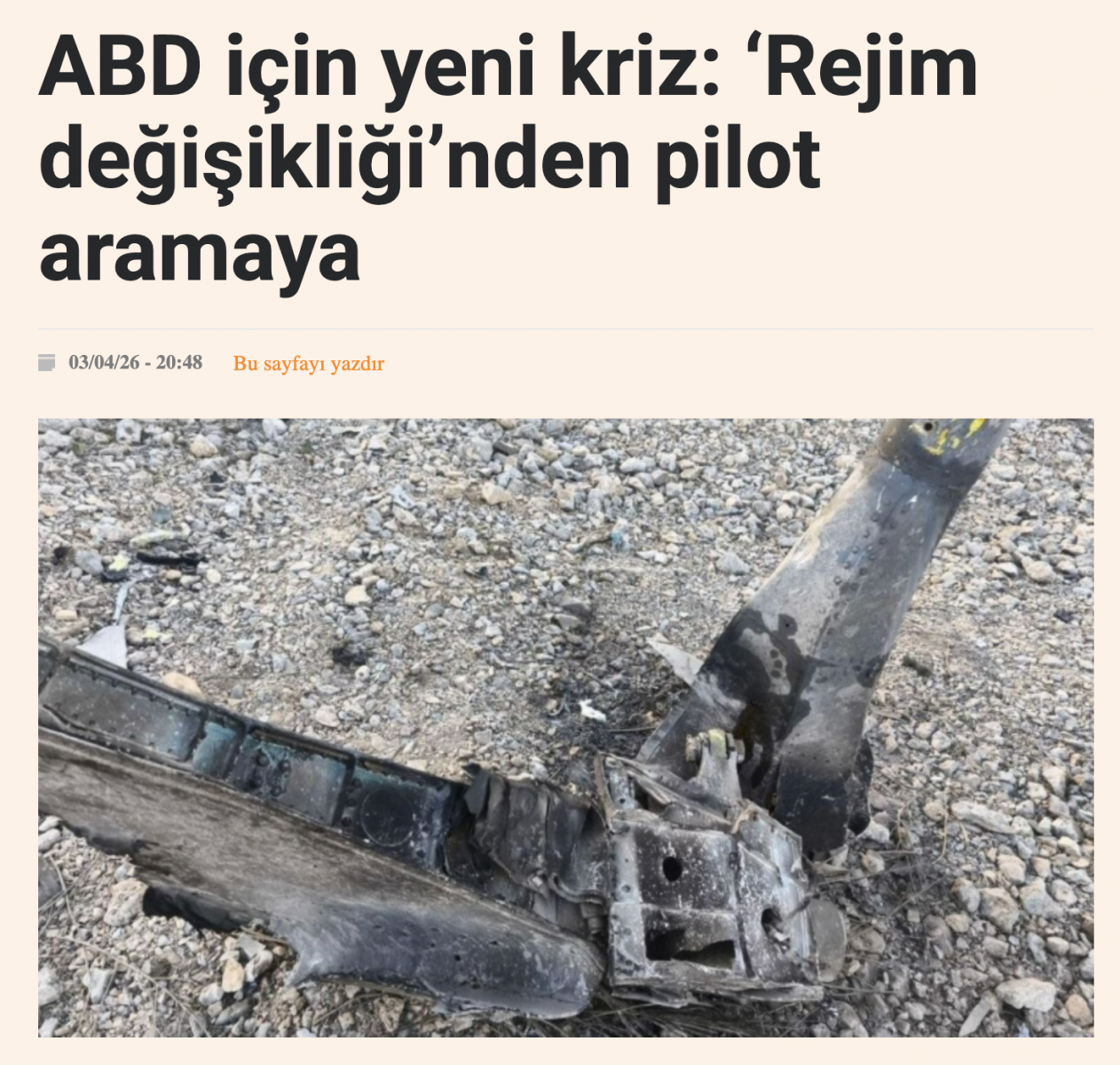 "Bu stratejisiz savaş, ‘rejim değişikliği’ hedefinden ‘Pilotlarımızı bulabilen var mı? Lütfen?’ noktasına düştü. Ne büyük bir ilerleme."