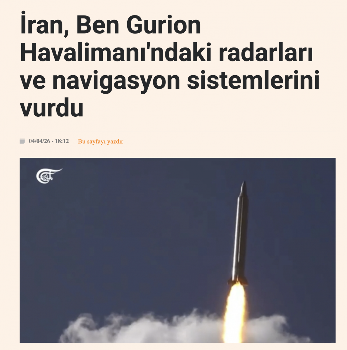 Yemen Silahlı Kuvvetleri, Devrim Muhafızları ve Hizbullah koordinasyon içinde yürütülen “beşinci büyük harekâtta” Ben Gurion Havalimanı’nı parçalanma özellikli balistik füze ve çok sayıda İHA ile hedef aldıklarını açıkladı.