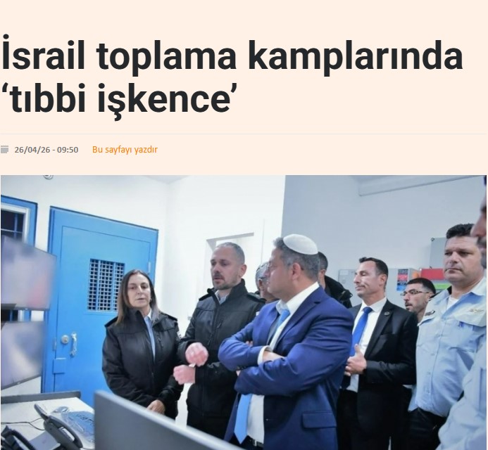 İtalyan L'Espresso gazetesi, İsrail hapishanelerindeki tutsak Filistinlilerin sistematik işkence, cinsel şiddet, aç bırakma ve tıbbi ihmal gibi ağır ihlallere maruz kaldığını belirtti.